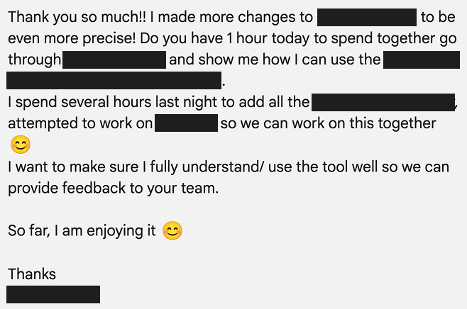 Fortunately, there's good news here: a small percentage of customers will return nuggets of wisdom that are measured in orders of magnitude greater than their revenue, if they decide we're worthy of the feedback. They tend to happen in the wake of messages like this: